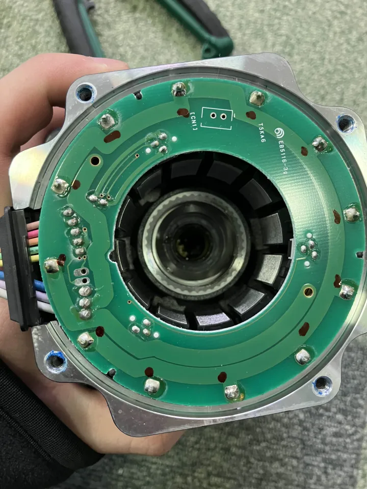 エンコーダーが付いてるのですが取説には説明が一切無かったので、このモーターが都合よく2ついたので片方をバラしてみることに