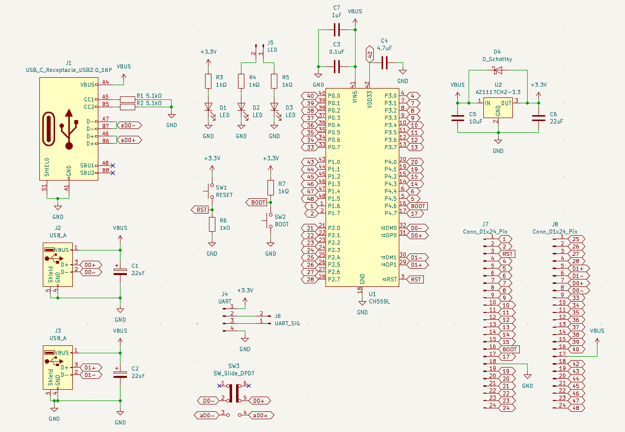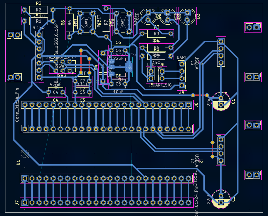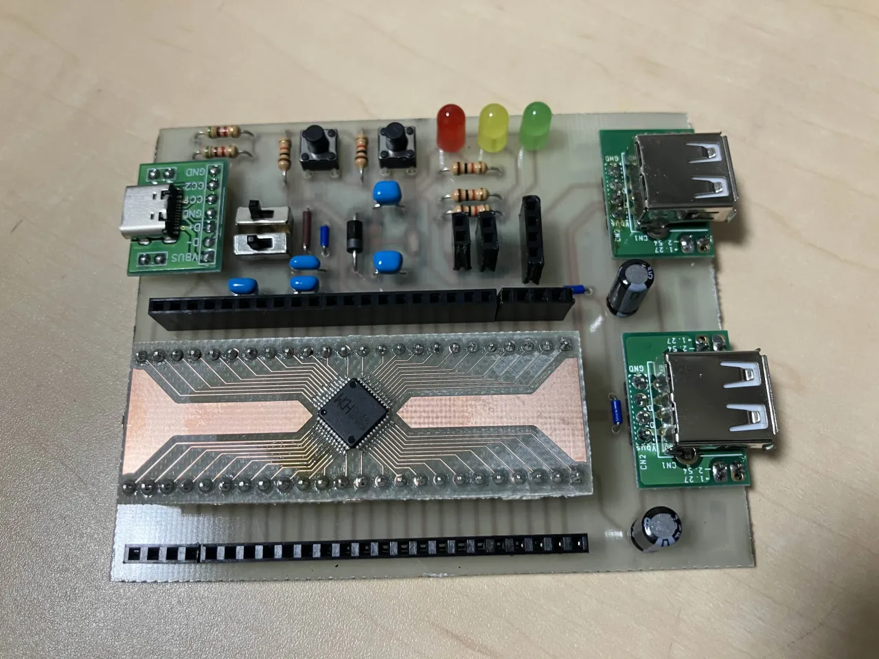 USBデバイスと後々USBホストをしたいのでブレッドボードでは辛いので基板を制作