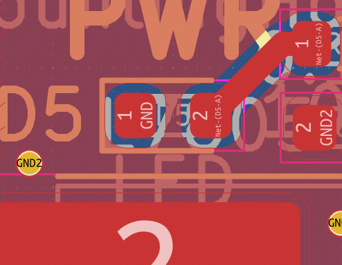 もう一つ、はんだ付け後にLEDが光らなくてLEDのGNDがどこにも繋がってないというミスも