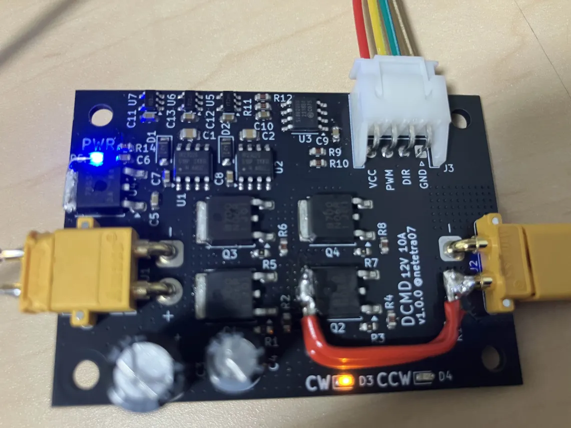 この後逆起電力に耐えれるかのチェックでDuty99%で回して反対方向に回したら燃えました